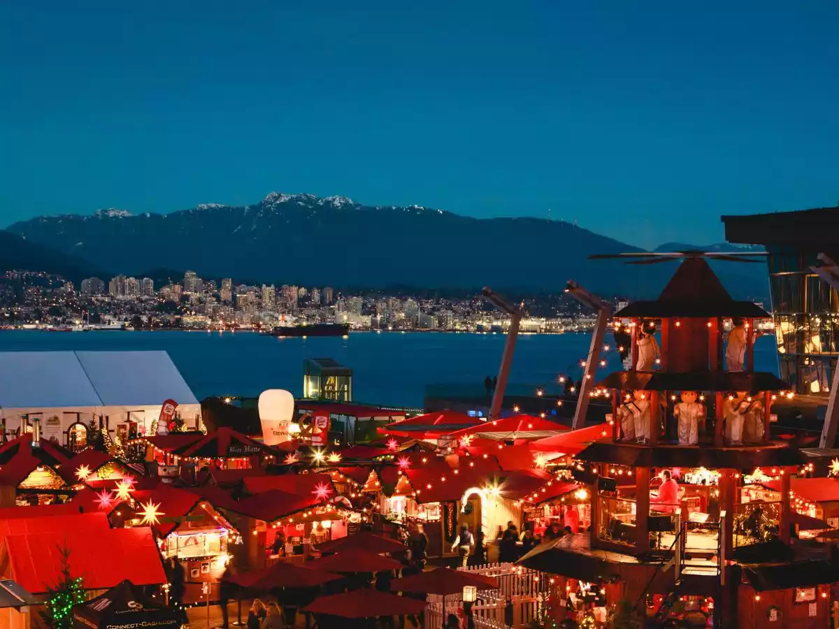 Located in the heart of downtown Vancouver, it's just a 15-minute walk from Gastown. And, you'll find easy access to landmarks like the Gastown Steam Clock and the neighborhood's own cobblestone-street charm — our personal favorite neighborhood in Vancouver in winter. The Christmas carousel promises delightful spins of joy, while delectable German treats and artisan gifts are sure to indulge your senses and please your loved ones.