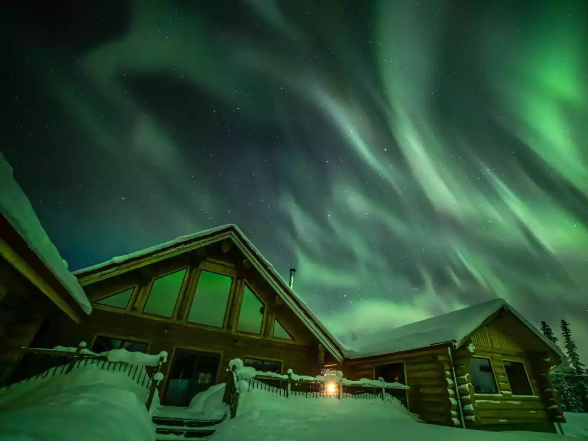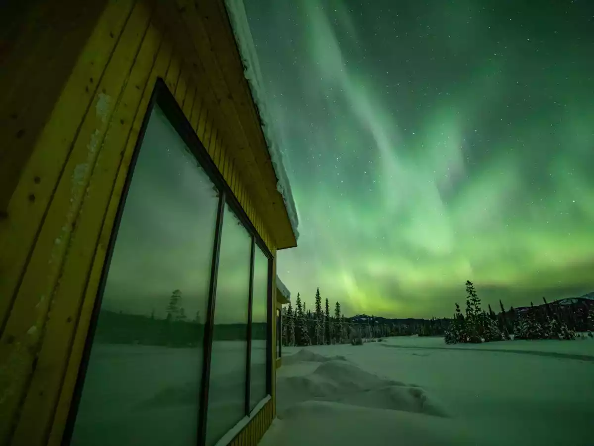 Upon your arrival in Whitehorse, you'll be transferred to Northern Lights Resort & Spa where log cabins and glass-fronted chalets look over icy forests and stunning mountains.