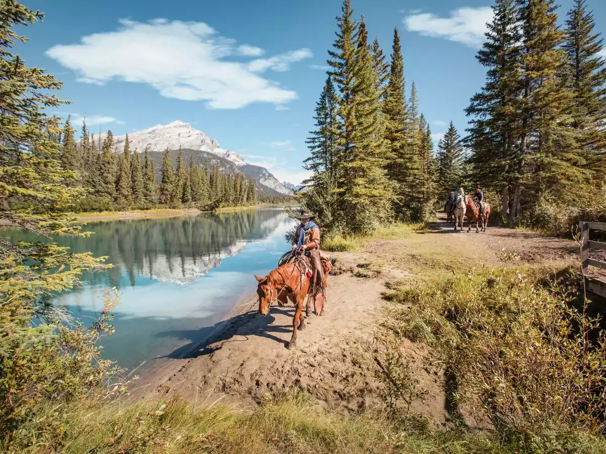 Horseback riding is the quickest way to get far beyond crowds in Banff. Without the effort of a hike, you'll venture down trails and into the forest, following rivers, pushing through marshes, and passing hot springs hidden in the trees. And, honestly, there's just something that feels right about setting out from a ranch in the mountains.