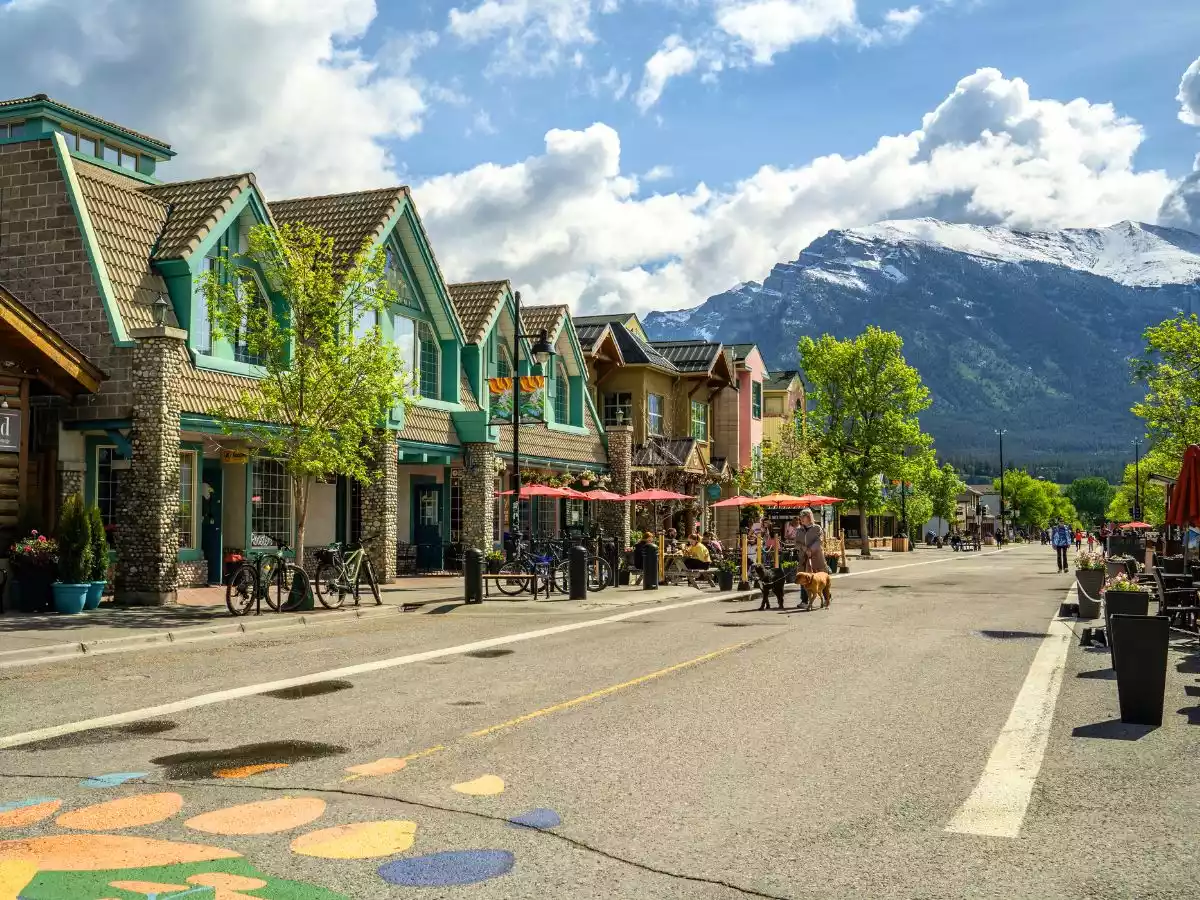 A bustling mountain town in the heart of the Canadian Rockies.