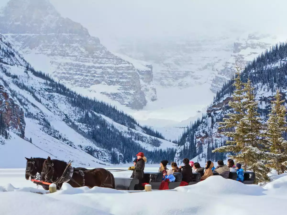 Also at Lake Louise, horse-drawn sleigh rides are one of the most festive things to do in Banff National Park in winter.