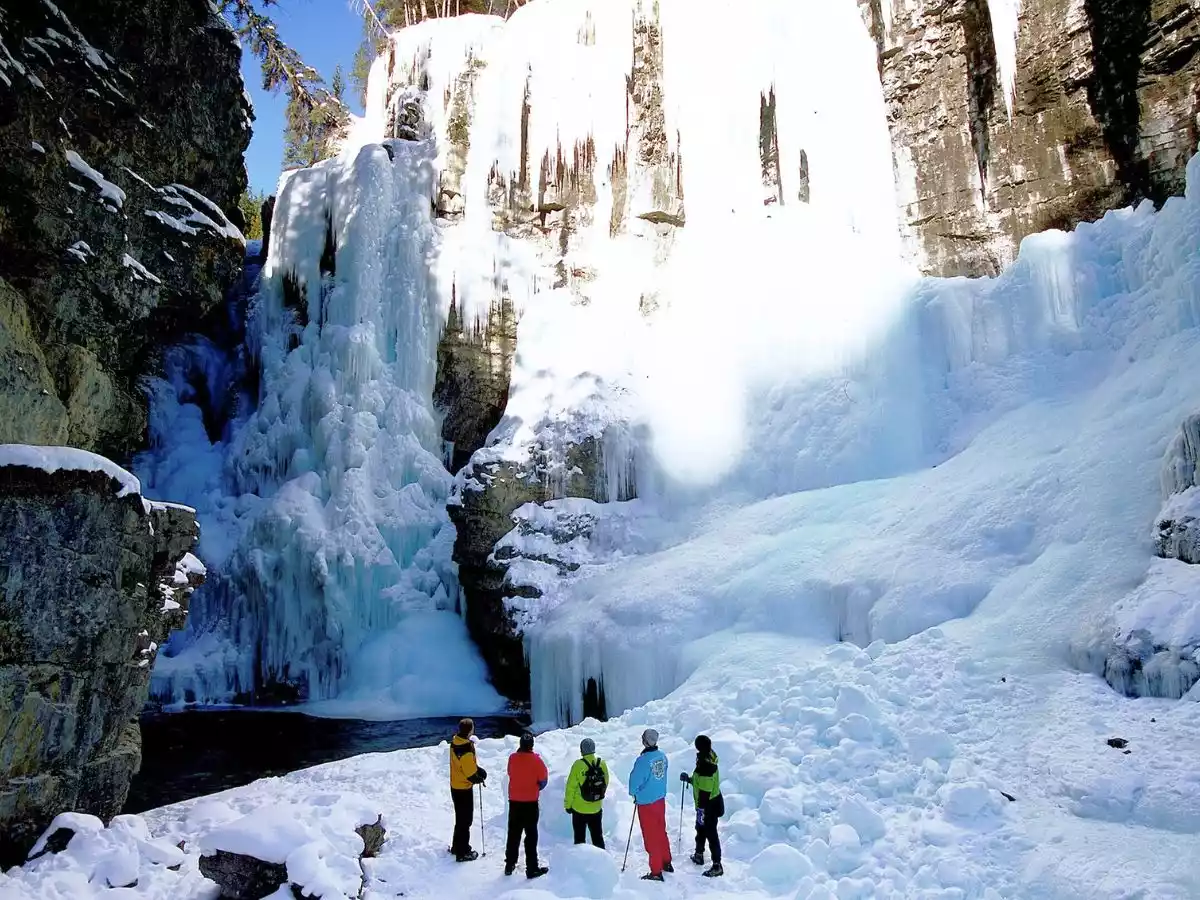 Exploring Banff by foot in winter can take several forms. We think the most unique is its canyon icewalks, where you'll see frozen waterfalls climbing the rock walls beside you.